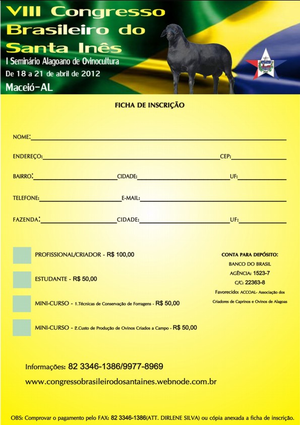 Preencha a ficha em DOC e reevie para o e-mail do oficial do congresso.